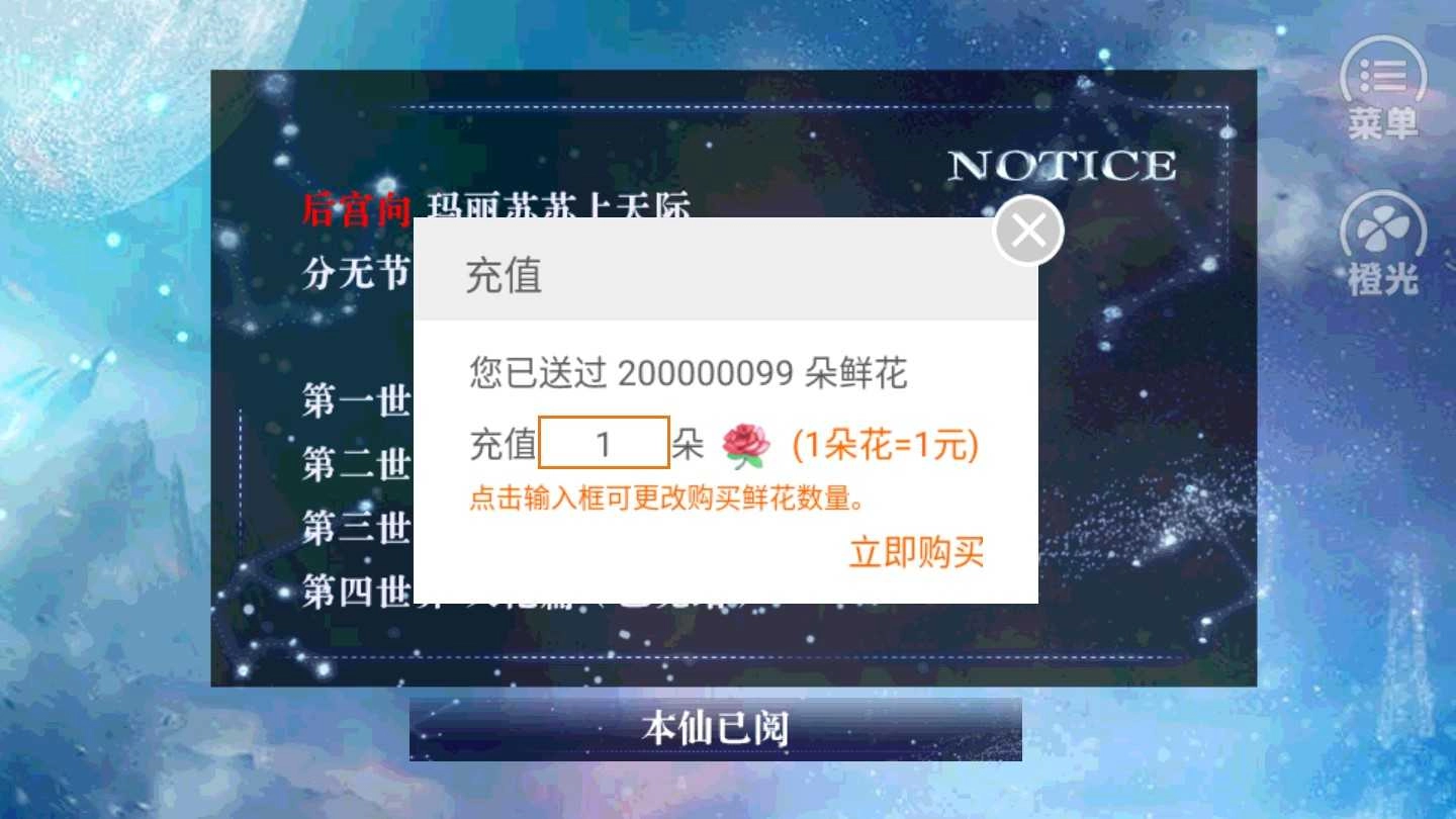 《美男十二宫》是一款橙光平台上的明星向游戏,游戏中塑造了众多风格各异的帅哥美女角色,玩家可以自由攻略心仪的对象,尽情享受游戏带来的乐趣!目前游戏已更新优化,鲜花道具现在可以免费使用啦,快来给你喜欢的角色送上鲜花支持吧,别再犹豫啦!