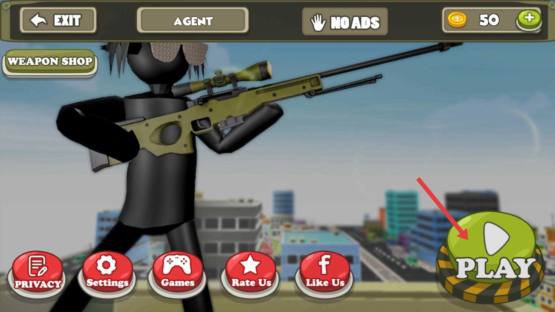 1、在游戏的初始界面,点击【PLAY】按钮,就能进入狙击任务的游戏场景,开启这段冒险之旅。