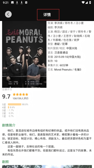4、进入详情页,浏览影片剧情简介、剧照等信息。