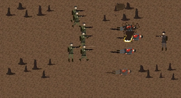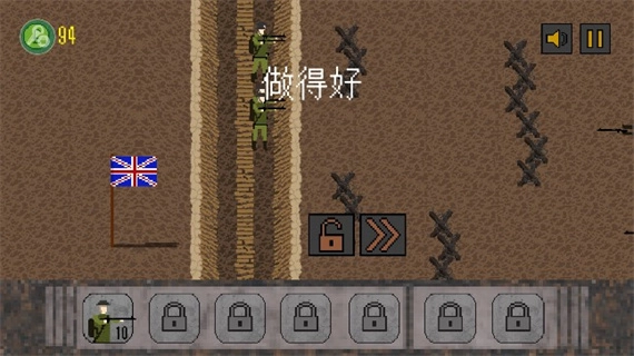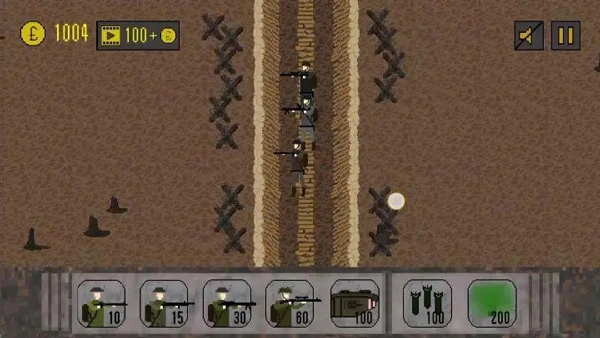 点击左下角购买士兵,这些士兵会预先部署在战壕中,你可以点击下达攻击指令,但要是敌方火力非常猛烈,就别让士兵们去白白送死了。接下来要逐步向敌方阵地推进,战斗过程中每消灭一个敌人都能积累点数并提升等级,让部队变得更强大,不过敌人也会同步升级,战斗难度会越来越高……点击右下角选择轰炸类型,越到后期解锁的炸弹种类越多,威力也更强劲。需要注意的是,英国阵营比较容易上手,德国阵营则难度较大:玩英国时,最后一关建议全力生产坦克,敌方出坦克就用轰炸应对,出步兵就投放毒气弹;玩德国时,英国军队实力很强,很容易快速击败你并打击你的士气,当有狙击手单位时,只需慢慢派遣狙击手,同时向英军投掷炸弹,就能减少自身士气损耗并给敌方造成高额损失,最后一关和英国阵营一样,生产坦克即可。