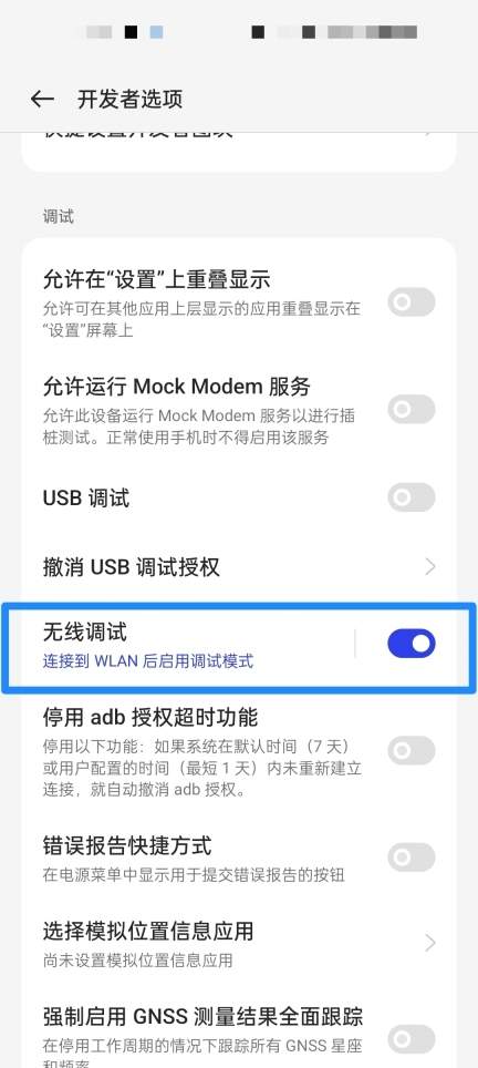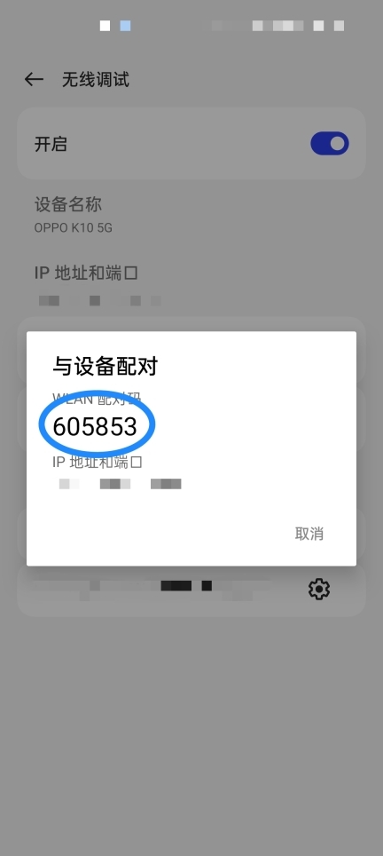 (2)填入"无线调试"中的端口号(此端口号会在每次启用"无线调试"时变化)