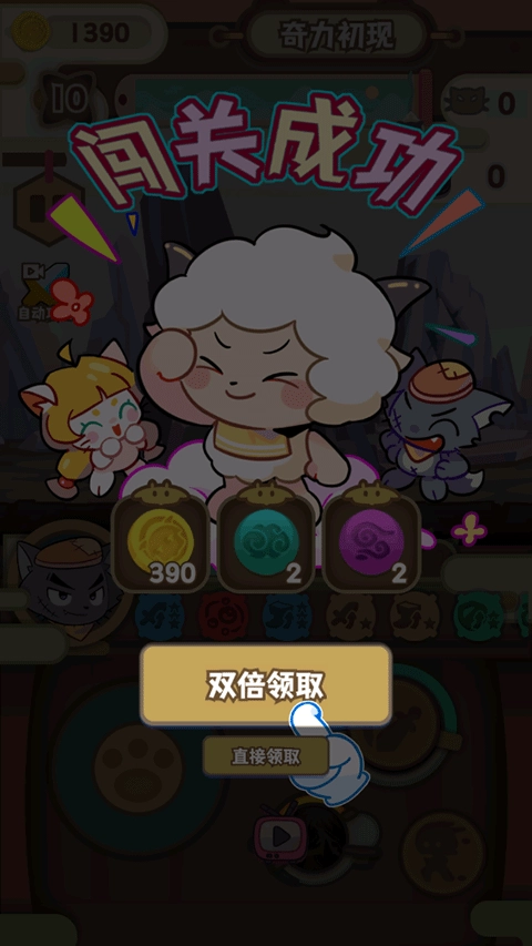5、闯关成功后,点击“双倍领取”获得金币、技能。
