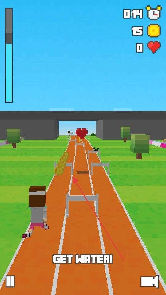 3、在奔跑过程中会出现GETWATER的提示,这时需要操控角色朝着金币所在的方向移动,同时避开路上的障碍物,保证角色能够成功拿到金币。