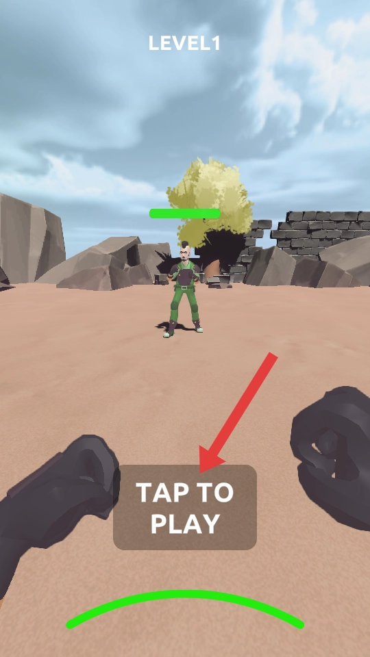 1、启动游戏后,界面会显示“LEVEL1”,同时有“TAP TO PLAY”的提示,点击该提示即可开启第一关,与对手进行格斗较量。