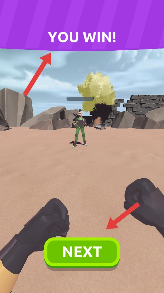 4、若成功战胜对手,屏幕上会出现显示“YOU WIN”的界面,同时伴有“NEXT”按钮,点击该按钮即可进入下一关,开启新的格斗挑战。