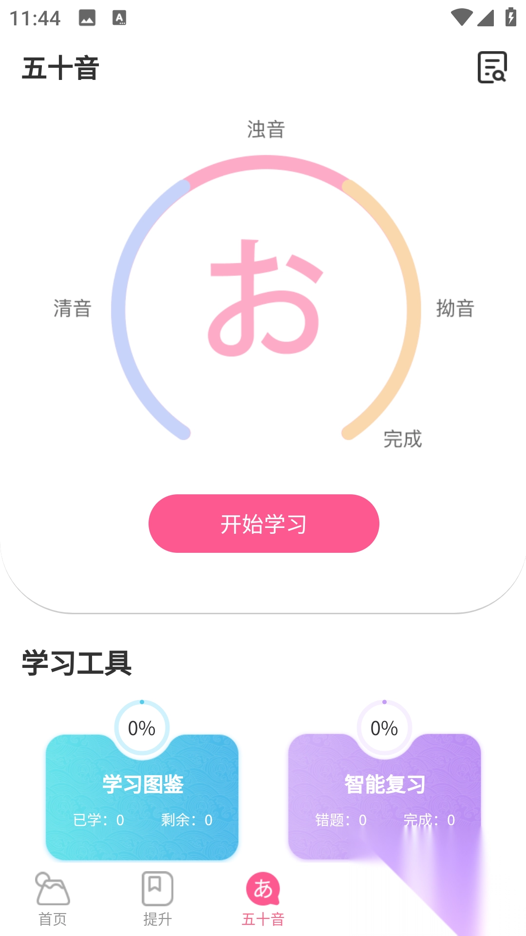 2、进入【五十音】界面, 点击【开始学习】即可。