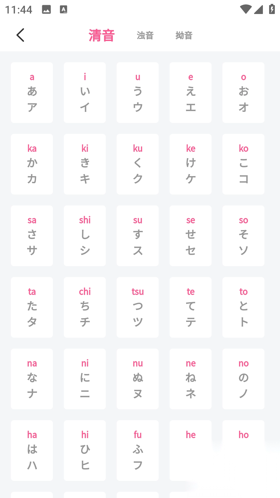 3、点击右上角图标,可以查看完整五十音分类和内容。
