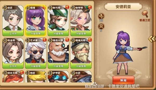 8、有需要时皮匠和裁缝换成铁匠、护甲匠、木匠、药剂师。用完换回来。