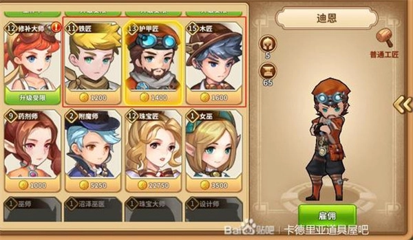 雇佣属于您的英雄,为他们穿上装备和武器,然后为您去收集材料吧!