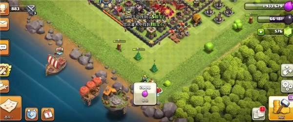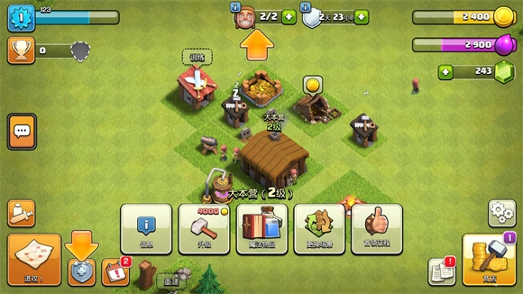 2、除了储金罐、圣水罐这类必须升级的建筑(七本会出现的暗黑重油罐暂且不提),游戏右上角会显示当前村庄的金币和圣水数量。要是资源不够升级建筑,系统会提示用宝石,但初期不建议大家随意用宝石,后面会说明怎么让宝石发挥最大价值。把该升级的建筑都升完后,就直接升级大本营,而且下线前一定要把村庄资源全部用完——因为初期我们基本不造防御直接升本,村庄处于无防御状态,没资源的话就没多少人会来打。不过升到6本后,必须补防御和科技,不然部落战会被打得很惨。