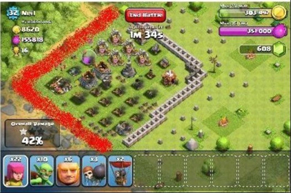3、在战斗时要注意什么部队怕什么塔,这样下兵的时候,不至于被对方速秒。只要避开这些强势的防御塔就能轻松拆掉对方的部落来掠夺金币。