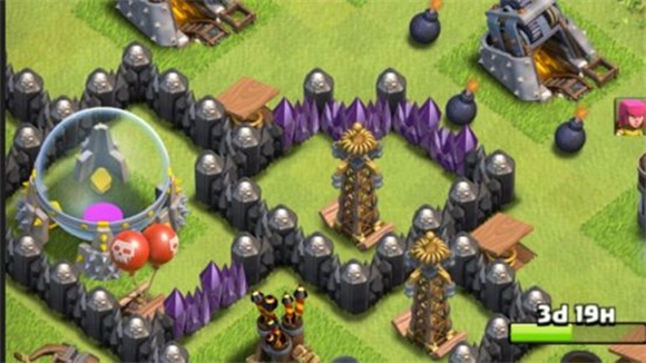2、城墙是防御和资源保护的得力工具,但单纯用城墙围住防御建筑,未必能给对手造成太大麻烦。不少新手常犯的一个错误,是让防御建筑直接暴露在敌方远程火力范围内——这样的弊端很明显,对手只需投放几个弓箭手或法师,就能轻松摧毁一处防御。更合理的布局策略是:在围墙保护的防御建筑外侧,摆放一些非防御类建筑,既能吸引敌人火力,又能让己方防御持续发挥作用。需要特别注意的是,地图的四条边界无法替代城墙的作用,它们挡不住敌人的进攻。