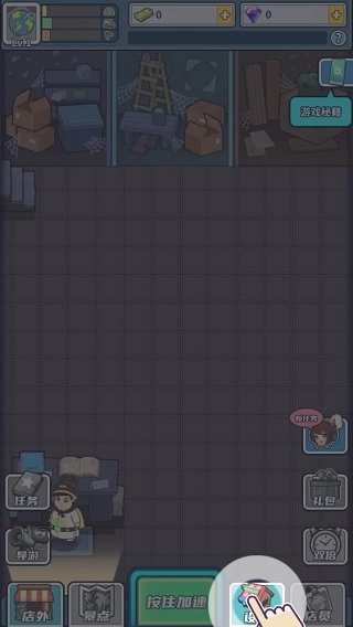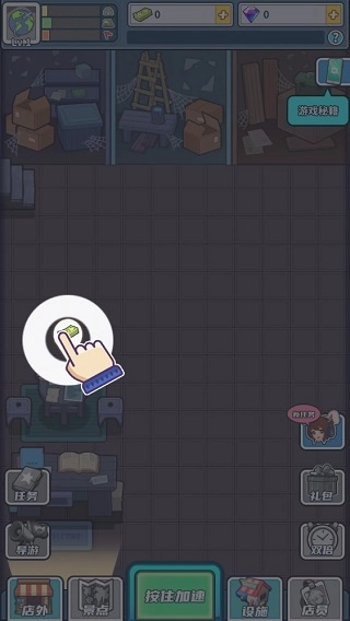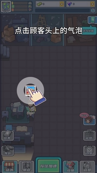 新店装修,首要任务是把场地打扫干净。请参照图中的指引,点击屏幕上对应的位置,即可启动杂物清理操作。