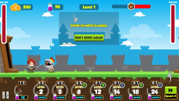 1、点击下方的战士,与敌方士兵展开战斗,购买战士后会有一段缓冲时间,若敌军距离过近,无需慌张;