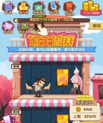 进入游戏界面后,升级城寨能获取红包奖励与金币奖励。金币可用于城寨升级,红包则是实际收益。只要金币充足,就能持续升级,而金币可通过房租收入、升级奖励等途径获取。城寨等级越高,获得红包的机会就越多,因此升级十分关键。