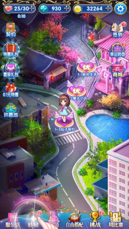 2、另外,游戏里的【娃娃】【许愿池】【挑战】【周比赛】【幸运转盘】等玩法,处处都藏着小惊喜等着我们去发现。只要在游戏里多尝试、多参与,并且坚持下去,就能收获不错的回报。像能帮我们修炼、表演的娃娃,每次只需几分钟就能赚得不少金币;每天坚持参与许愿池和挑战,还能赢取华丽的套装。尽情享受游戏时光,慢慢体会其中的美好吧。每次收集一点,说不定某天看到套装里自己收集的漂亮服装,就会油然而生满满的成就感!百变罗丽仙子,圆你一个唯美的精灵梦!