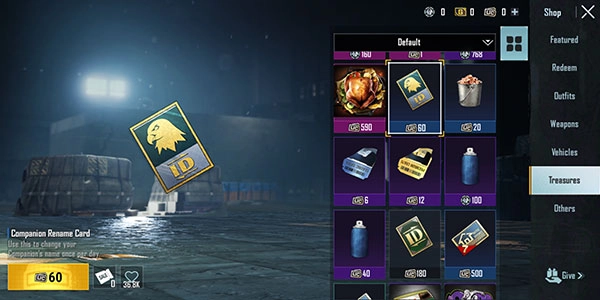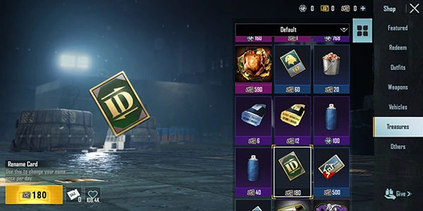 2、游戏里的改名卡名为【Rename Card】,卡片上印有醒目的ID字样,玩家可在Treasures标签页中找到它,其售价为180点券。