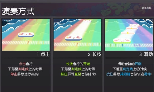 点击音符,下落至判定线上的时候单击屏幕进行演奏!