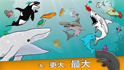 1、不同的鱼类都可以解锁,鱼吃鱼的吞噬玩法非常有趣