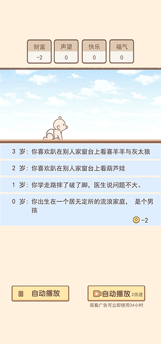 6、然后会自动播放人物每一岁所经历的事件,感受趣味人生。