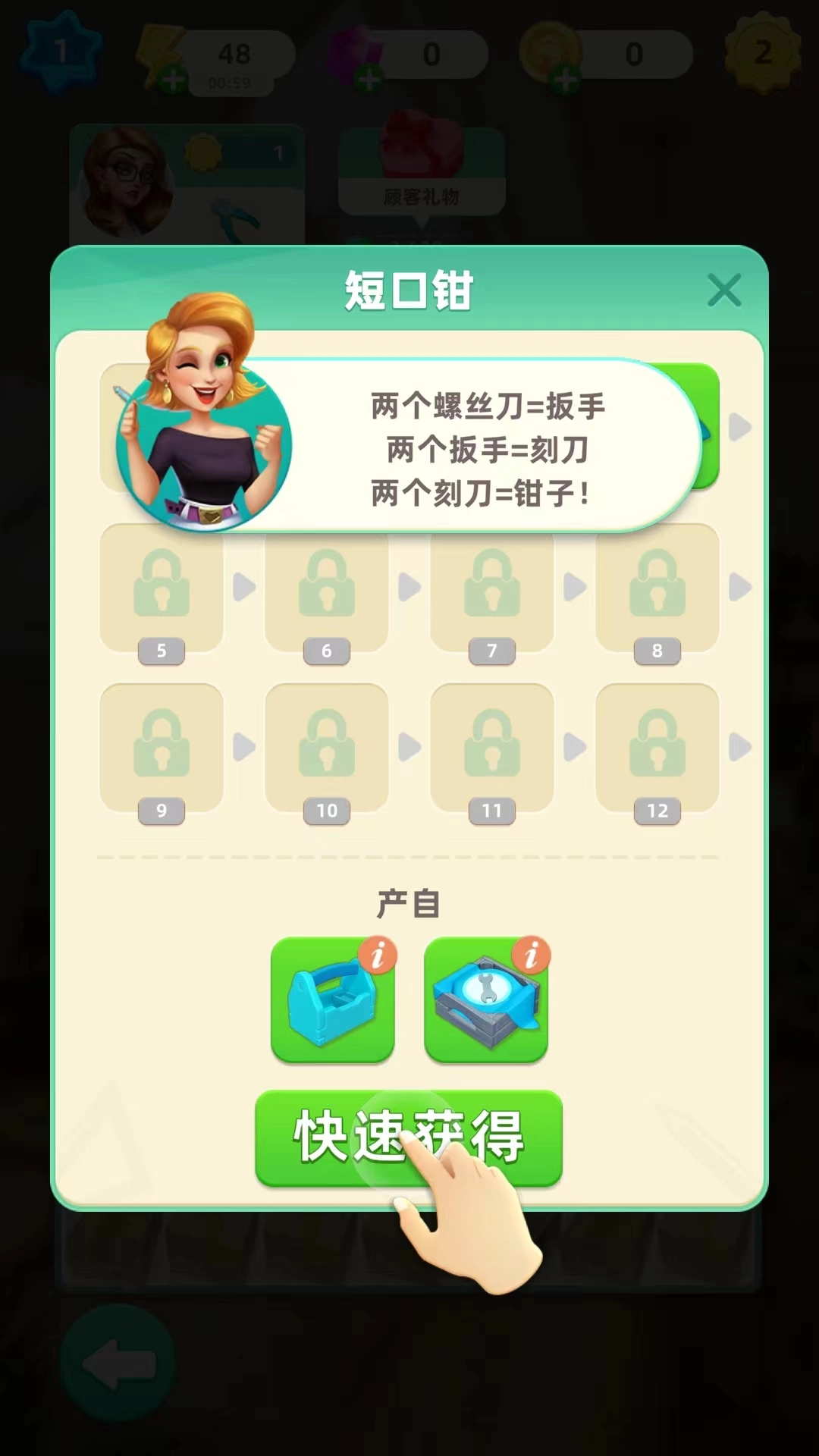 5、我们可以通过为顾客合成商品,完成订单,从而获得金币,