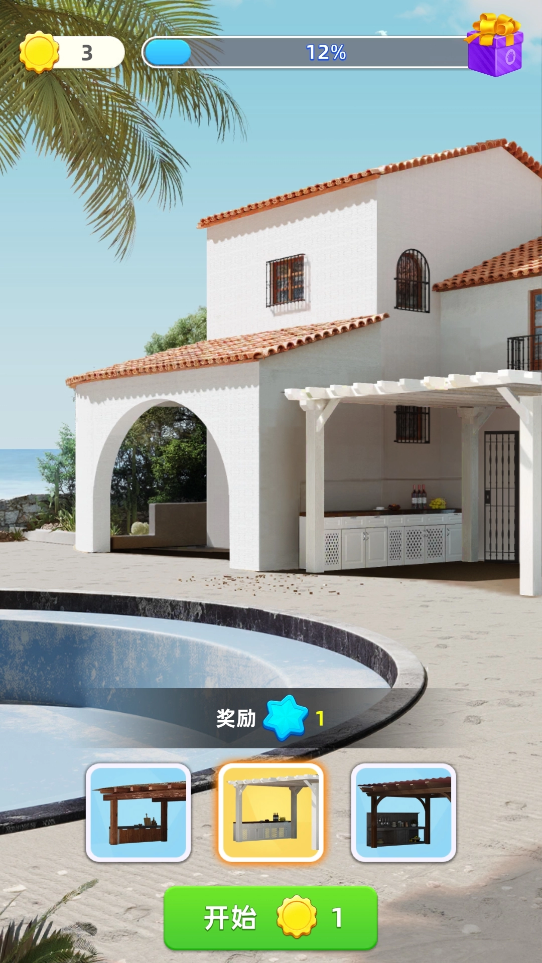 7、拥有金币后,我们可以为别墅添加新的建筑和装饰物,