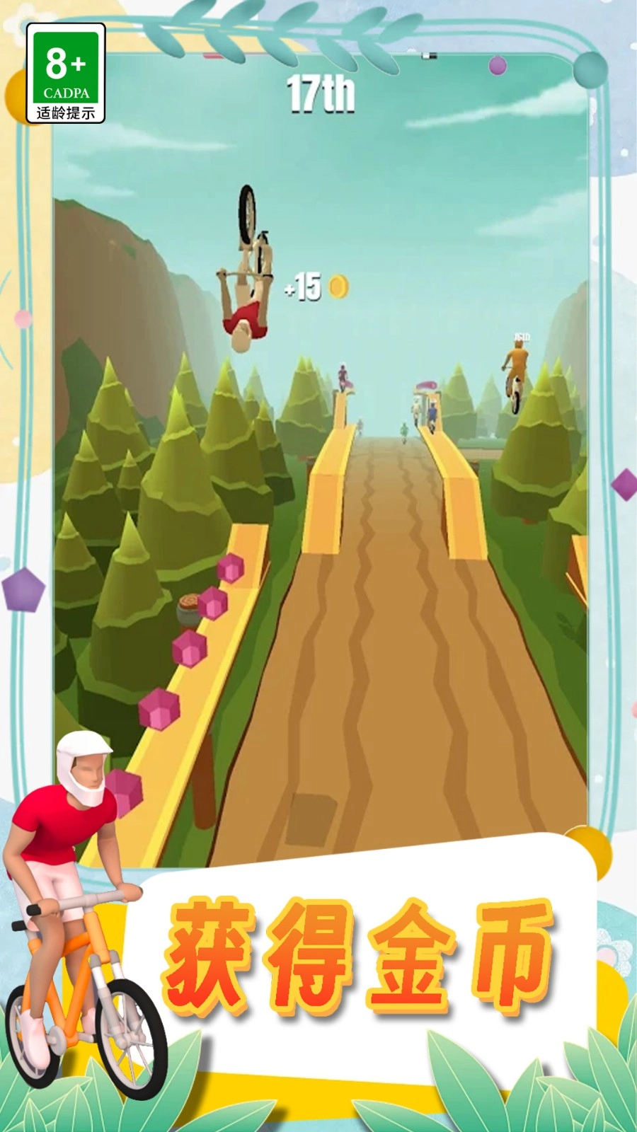 挑战自行车比赛衍生出趣味十足的自行车特技竞技游戏,玩家在游戏里需操控自行车手于各类赛道上施展跳跃、空中旋转等特技动作,力求以最快速度冲过终点线,赢得比赛胜利。