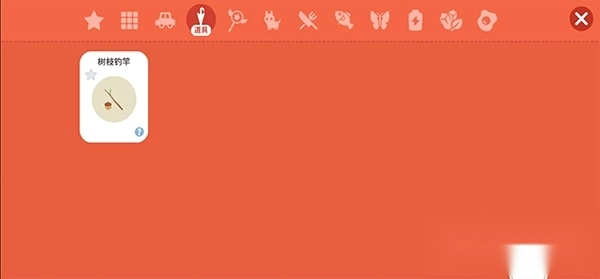 5、打开右下角的背包,打开道具页面,将树枝鱼钩装备上;