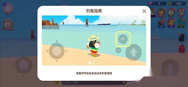 4、根据任务提示来到沙滩角色旁边,我们将获得一个鱼竿;