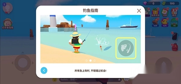 2、点开后会出现一个初学者任务指南,我们选择第二个“钓鱼的手感”选项,然后点击下方的“带路”按钮。