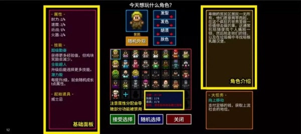 3、属性:总属性点数上限为20点,若超限则判定为“超人”状态,无法获得特殊奖励(如炸鸡块/成就)。