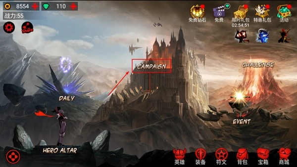 1、火柴人联盟竞技场正版,点击CAMPAIGN开始;