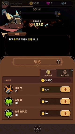 4、玩家完成各项任务获得金币后,可用于升级自身的攻击力与血量,以此提升战斗力;