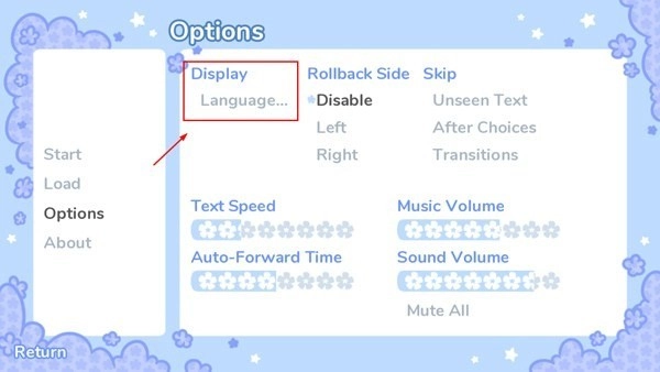 1、打开最新版的starry flowers,点击右侧的Options选项;