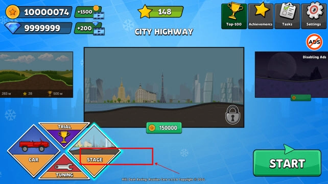 5、返回游戏界面后,点击左下角的“stage”选项以选择场景关卡。
