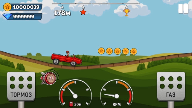 2、游戏界面的右上角显示着驾驶目标距离,像这一关的目标就是500米。屏幕底部则分别设置了加速和刹车按钮。