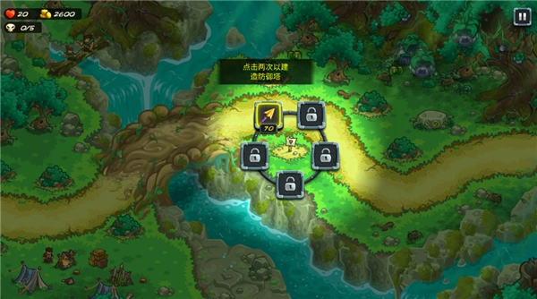 1、首先点击地图中可以放置防御塔的位置,点击两次即可建造