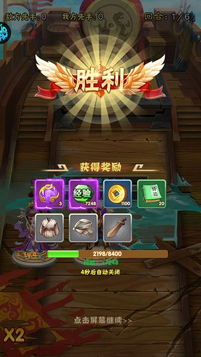 6、战斗胜利后可以获得经验、金币、装备等奖励
