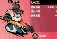 2、巨力堪称前期清屏的利器,在游戏大前期阶段实用性很高,能帮助玩家快速解锁后续关卡。它原本仅对地面单位有效,但经过五次以上的强化后,也能对空中目标发起攻击;压路机在多次增强后体积会显著变大,攻击覆盖范围变得非常广,清屏效果十分出色,很适合用来对付成群结队的敌人。