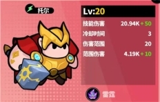 3、托尔这个角色,他的单发闪电技能具备范围伤害效果,而且冷却时间特别短。我个人在挑战boss时很乐意带上他,尤其是当boss对电属性伤害比较畏惧的时候。和前面提到的一样,托尔也很适合前期使用,搭配子弹类技能能够快速清理掉前5波怪物,一旦开启他的技能,就能帮助我们迅速积累资源、提升发育速度。