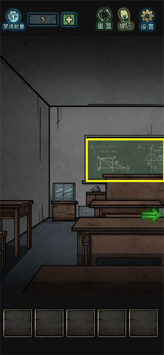 3、随后前往教室左侧,就能看到黑板上有一排荧光绿色的字迹,用湿抹布将这些字擦掉后,黑板上会显现出一串数字“9274”。这串数字与教室右侧窗台上的铁盒相对应,只需按照罗马数字将铁盒转动到正确数字即可。