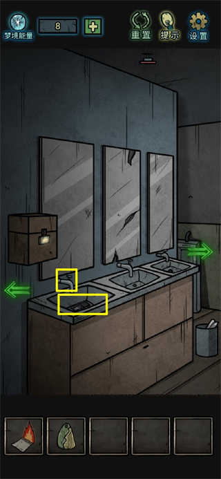 9、随后径直前往洗手间,在洗手间的第二个水池处能拾取到梦境能量,垃圾桶旁有一根尚未熄灭的烟蒂需要拾取,洗手池中间的镜子上方还能找到一片镜子碎片,将洗手池下方柜子的抽屉拉开,可拾取到一个神秘碎片和一把扳手。