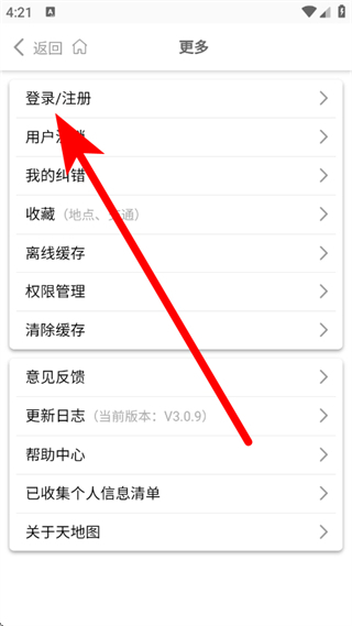2、在更多页面,点击登录注册,进入登录页面。