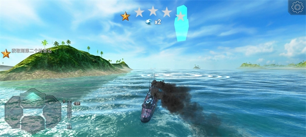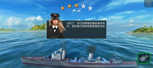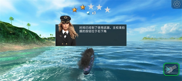 8、当玩家的行驶开战舰合格后,需要使用武器,武器按钮则是在屏幕右下角;