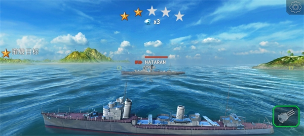 9、找到敌军战舰,点击右下角按钮开火即可;