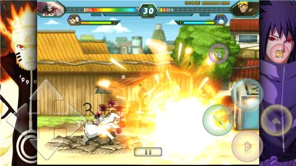 1、进入到这款游戏中,第一时间映入眼帘的就是火影的一些名场面,点击任意区域即可进入游戏;