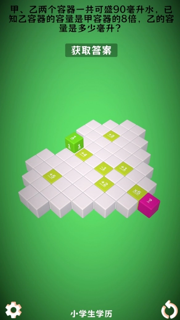 2、玩家通过滑动操作控制主角方块朝对应方向翻滚移动,一旦主角方块与任意数字方块发生触碰,便会按照该数字方块上的运算符号和数字进行计算。