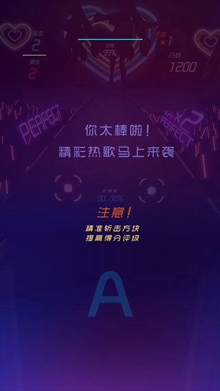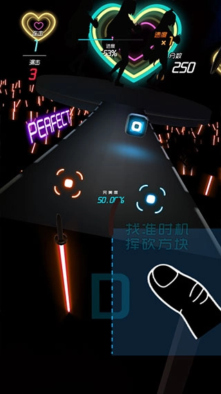 2、左边代表红方块,右边代表蓝方块,根据音符来击杀方块