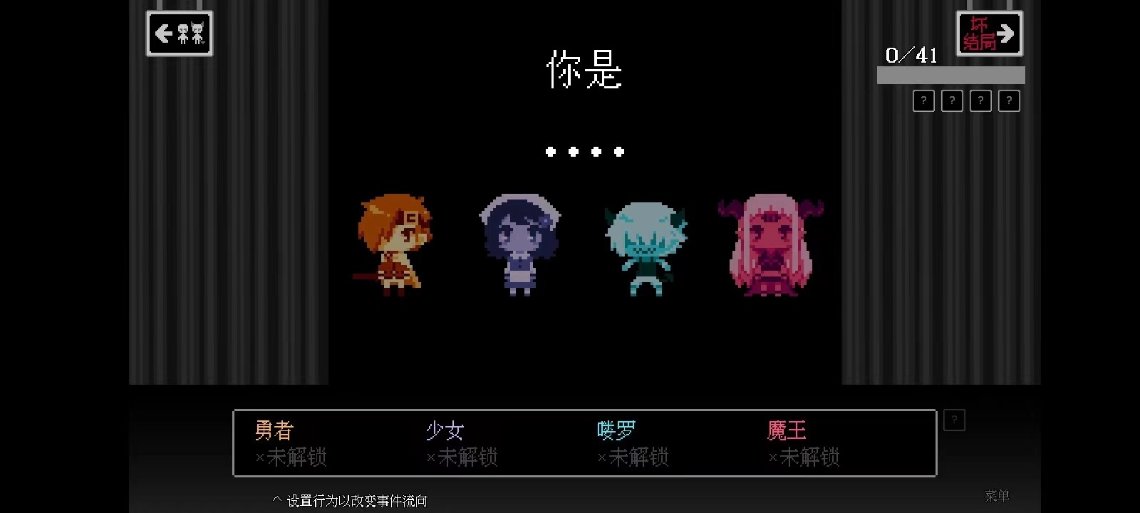 7、玩家可在这两个回答里选一个,选了之后他就会带你去见魔王;要是选项上出现了四个字,而你刚好选了这个选项,等结局出来后,你会发现人物下方就有这四个小字。