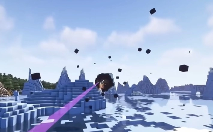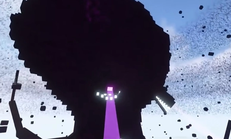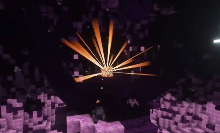 2、这个阶段凋零风暴头顶有一个缺口,在被紫色光线吸引时,利用末影珠可以从缺口进入其内部